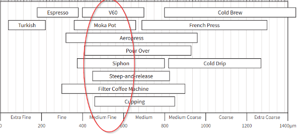 - Grind coffee to a coarse texture, similar to sea salt. Usally in the middle between a Filter brew and espresso as per the below image